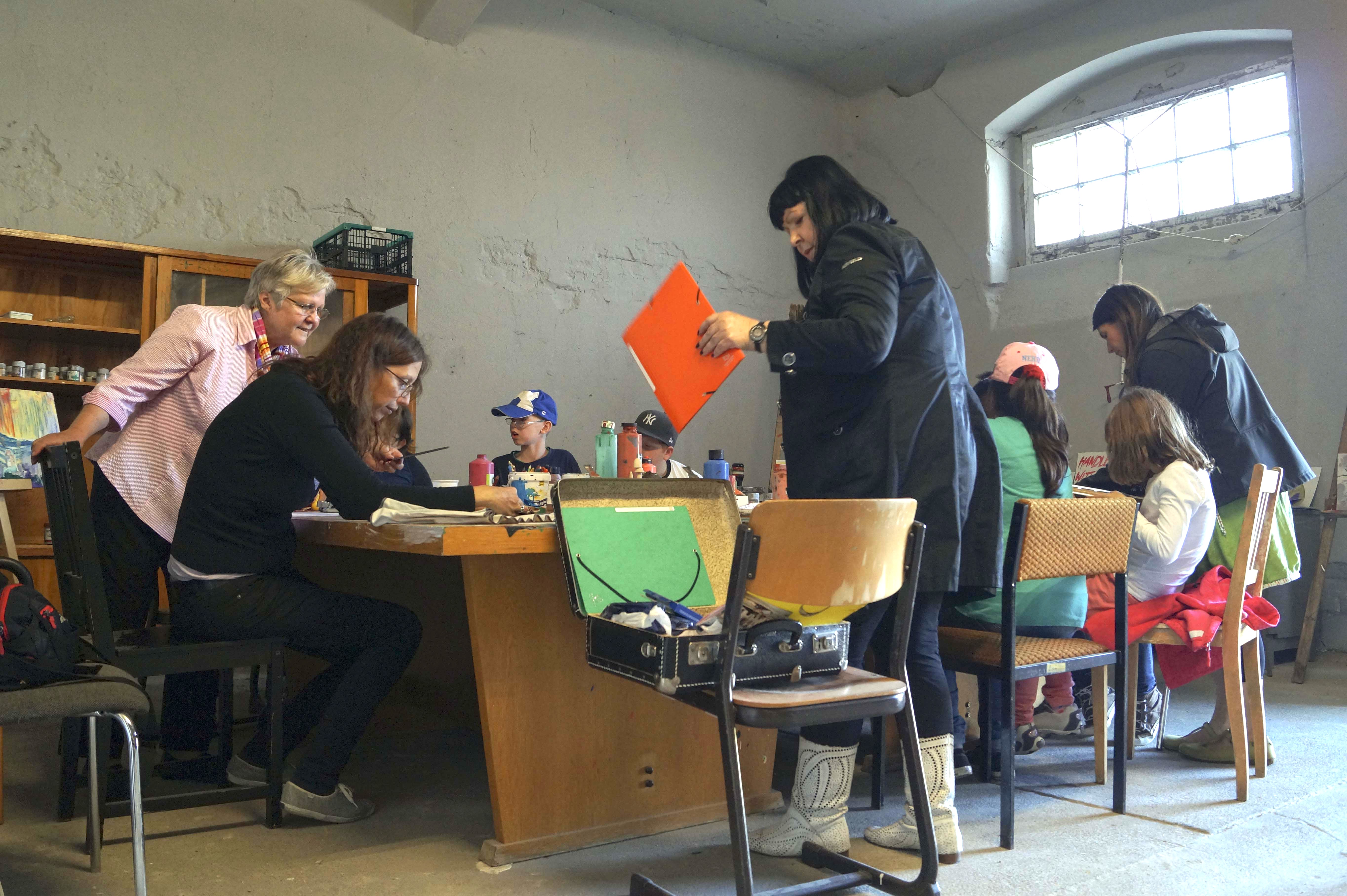 Wie riecht Rot oder klingt Papier, wie fühlt sich Leinwand an, wie verhält sich Leim, was brauche ich, um ein Bild zu malen? Hier sind Aktion und Kreativität gefragt! Inspiriert von den Originalen in der Ausstellung können die jungen Teilnehmer*innen eigene Werke gestalten, experimentieren und nähern sich dadurch der Kunst an. Das „Atelier der Dinge" der OSTRALE kann während der Öffnungszeiten eigenständig genutzt werden.